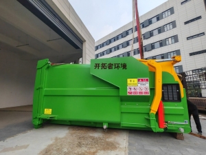 三缸四柱垂直式水平压缩设备 8立方垂直压缩式垃圾中转站凉山安装好凉山地区首座8立方三缸四柱垂直式水平压缩垃圾中转站的正式安装完成。这款8立方垂直压缩式垃圾中转站采用三缸(主缸+两个副缸)与四立柱的垂直压缩结构,压缩力达120吨,还能够实现日处理量60-100吨,压缩后垃圾密度可达0.95t/m³,甚至在某些情况下可达到0.9t/m312,能够有效降垃圾压缩成块,减少转运和处理。该设备通过垂直压缩工艺将松散垃圾压缩至原体积的1/3-1/5,每次可形成两块4立方垃圾块(总计8立方),由勾臂式垃圾车(全封闭)进行转运,这种转运模式不仅提